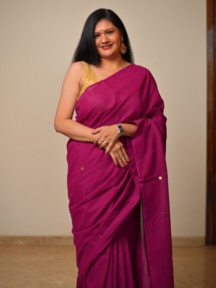 Megenta Muse Khadi Cotton Magenta Saree with Ginni Work