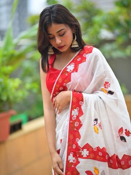 Patch & Grace White-Red Khadi Cotton with Applique Patchwork