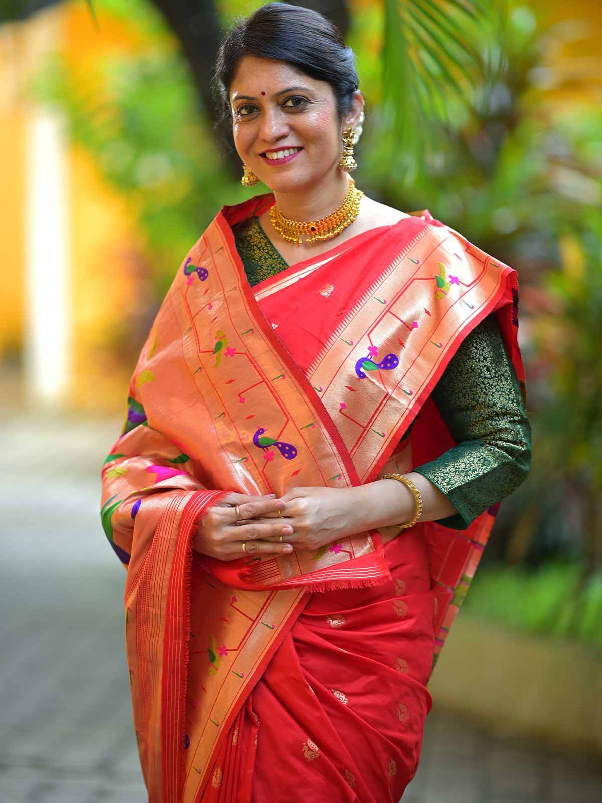 Rajashree Pure Soft Gold Zari Kanchivaram Red Paithani Silk Saree