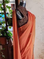 Ramya is a beautifully crafted pure mul soft cotton saree in a warm and refreshing orange shade, offering a lightweight and breathable drape perfect for all-day comfort. The saree features a subtle dark brown small border that adds contrast and definition while maintaining an elegant minimal aesthetic. Finished with delicate tassels for an extra touch of charm, Ramya is ideal for everyday wear, festive gatherings, office styling, or casual outings.