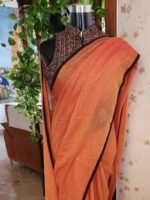 Ramya Orange Pure Mul Cotton Saree with Dark Brown Border & Tassels