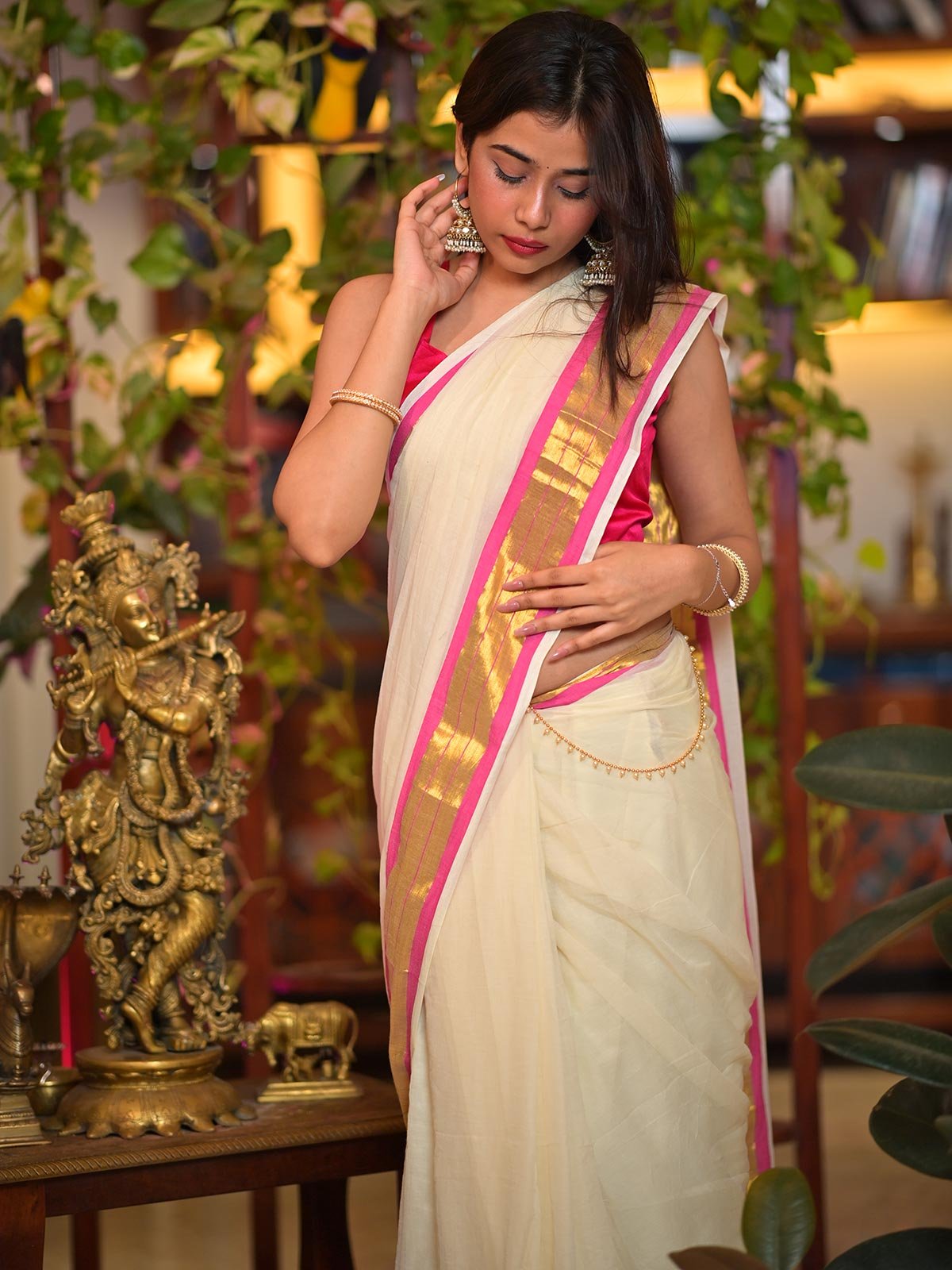 Its soft texture and fluid fall make it easy to drape and perfect for all seasons. Pair it with contrast blouses, silver jewellery, or handloom pieces for a refined and timeless look.