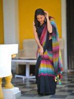 Saptarangi Black and Multicolour Mul Cotton Saree with Tassels